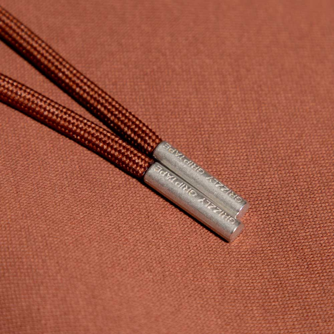 Polerón con gorro Grizzly griptape bordado en su pecho, el cordón del polerón termina con las puntas metálicas y el ojal.