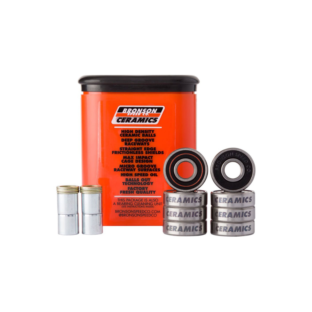 Bronson Speed Co. Next Generation Ceramic Bearings están hechos para el skateboarding de hoy. Diseñados para que andes más rápido, suave y por más tiempo. Creados para un rendimiento máximo, estos rodamientos de cerámica reducen la fricción, aumentan la durabilidad y requieren menos mantención, así que te puedes enfocar en patinar, no en tu tabla.