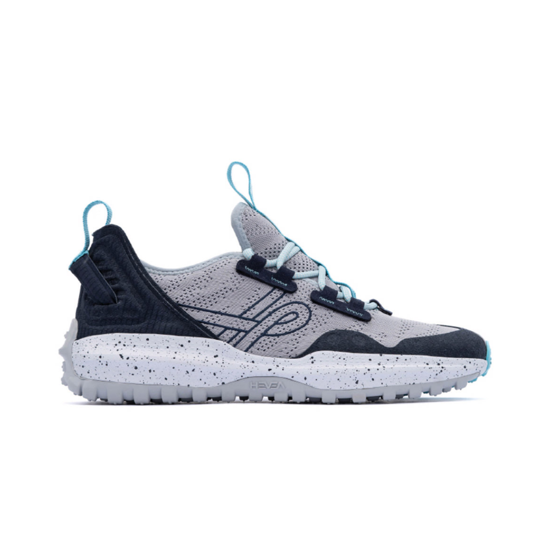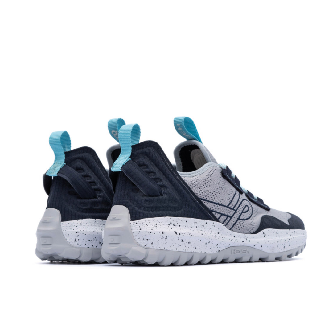 HEVEA BRASILIENSIS fue diseñado para combinar el deporte clásico con una zapatilla cómoda, ideal para el ajetreo y el bullicio de la jungla de cemento. La parte superior está confeccionada con tejido jacquard, que tiene diseños inspirados en el reflejo del agua realizado directamente en el material. También tiene una pieza de talón ripstop y lengüetas hechas de PET reciclado para ponerlo y quitarlo fácilmente.
