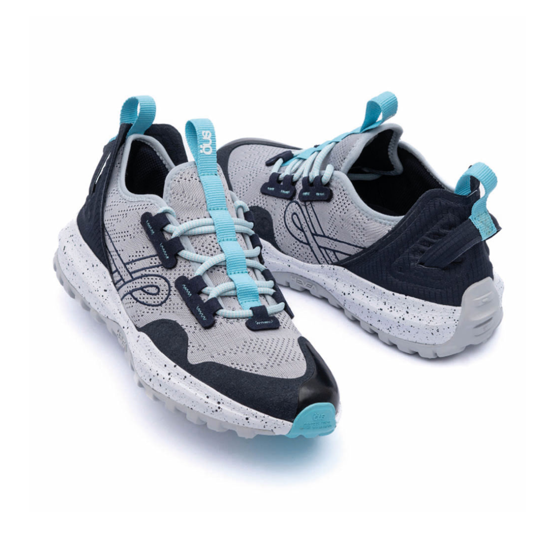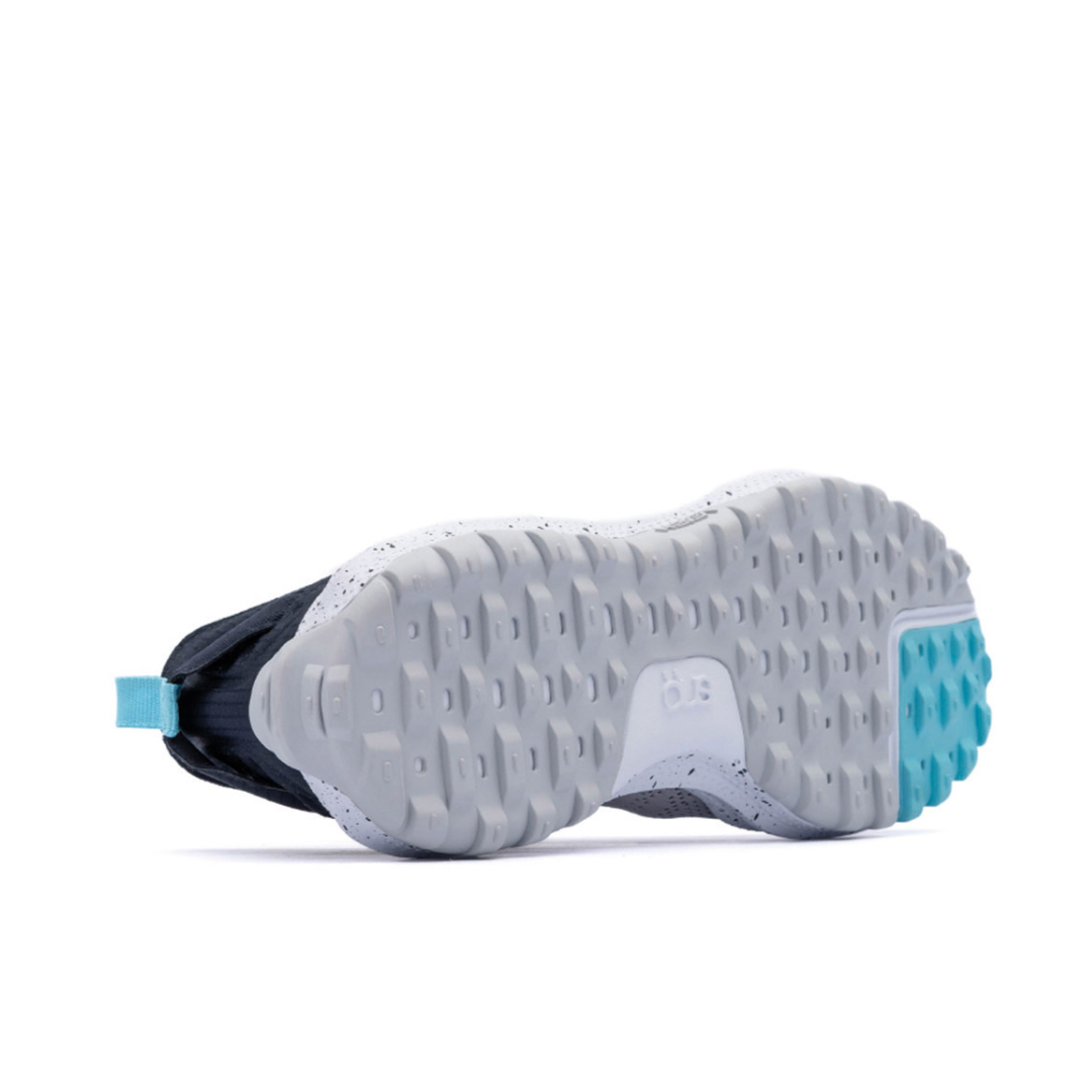 Su suela está fabricada en EVA moldeada y caucho granular A+, ofreciendo el máximo agarre al suelo y moldeando tu recorrido con comodidad. Además, cuenta con pequeñas cerraduras inspiradas en el mundo exterior, que aumentan la estabilidad, ya sea en la ciudad o en superficies naturales. Para completar, los cordones están hechos de poliéster reciclado y cuentan con una plantilla OrthoLite HybridPlus-Bio.